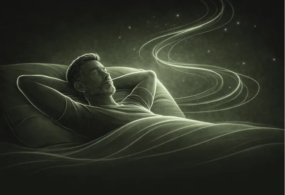 Du liegst abends im Bett und dein Kopf ist still. Tiefe Gelassenheit, weil dein Nervensystem reguliert ist und du nichts mehr kontrollieren musst.